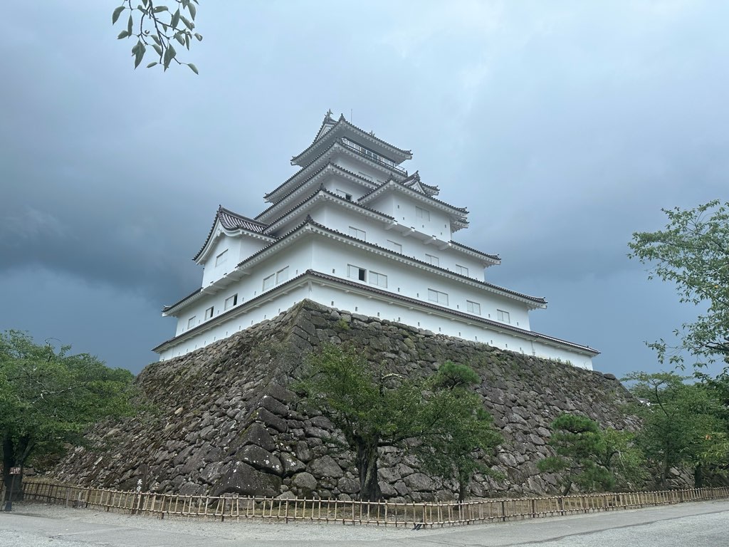 昼食後は鶴ヶ城に訪問しました。しかし、到着後すぐに激しい雷雨となってしまったため、天守閣の中は見学せずに駅に戻りました。