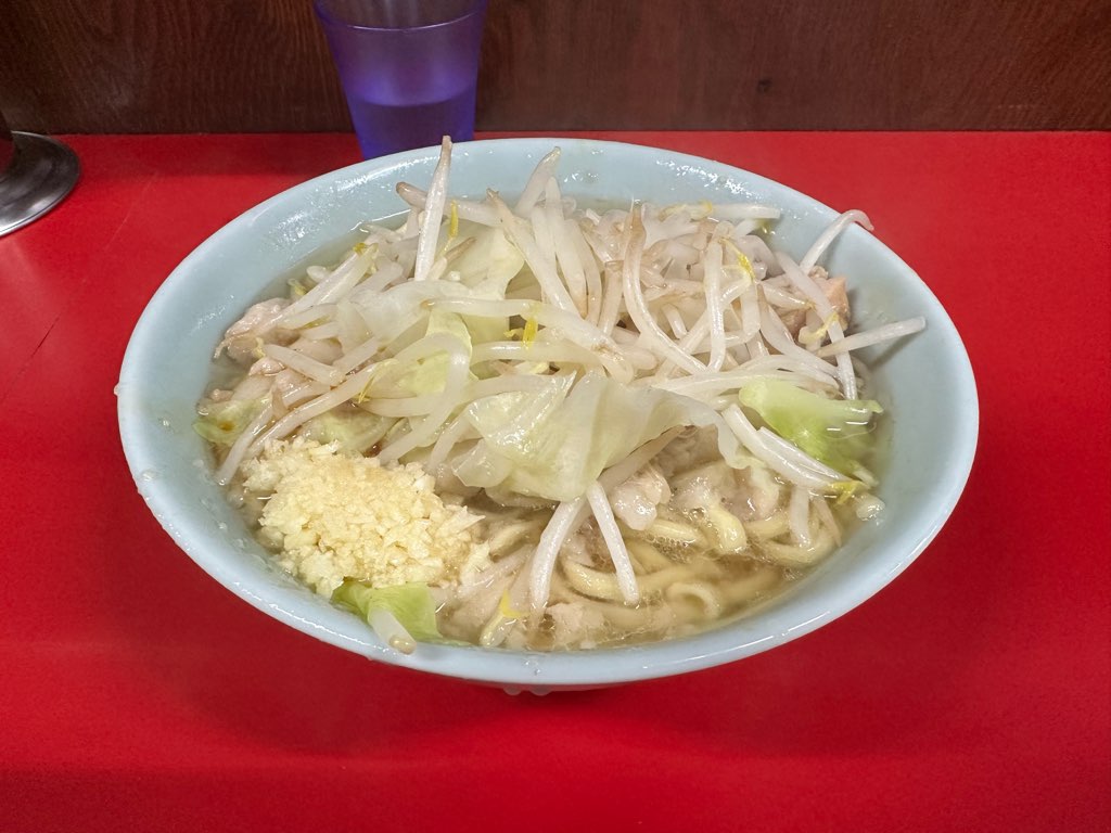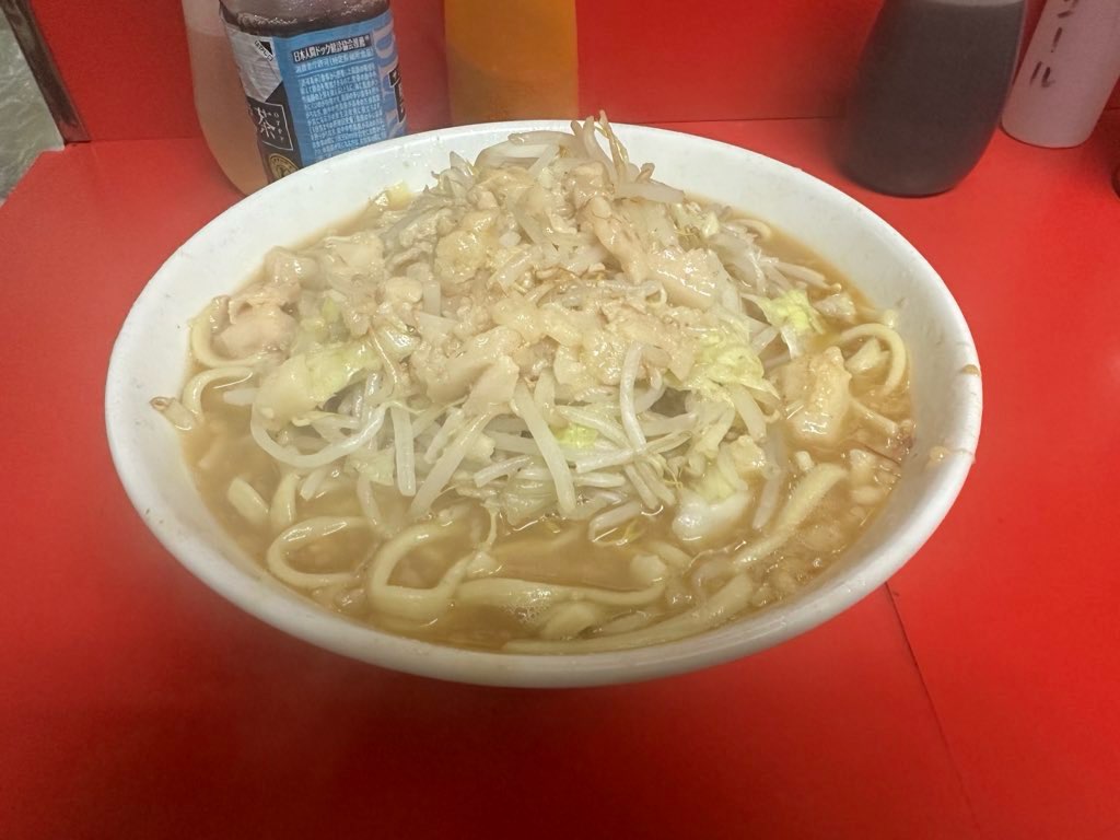 見た目通りのがっつり乳化でパンチの効いた1杯でした。「ヤサイ少なめアブラ少し」とコールしたところ、「ニンニクは入れないの?」と聞いてくださり、以前Xで流れてきた二郎Tier表で接客の1位が仙台店だったことを思い出しました。麺量は体感280gくらいでとても多かったのですが、食べても食べても止まらない、飽きが全く来ない味で、ペロリと平らげてしまいました。これを食べるために仙台に来たせいかもしれませんが、今まで食べた乳化の二郎系の中で一番美味しかったです。