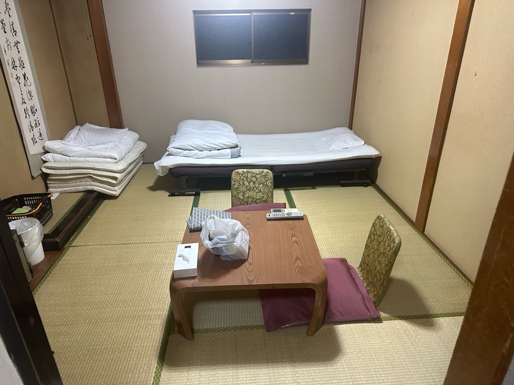 駅から10分ほど歩き、宿に到着しました。お風呂は近くの公衆浴場に行けばいいと思っていたため、風呂なしで4000円という破格の安さで泊まれました。部屋の内装はそこそこよかったのですが、廊下が古く壁も薄かったため他の宿泊者の音が漏れてきました。4000円なので仕方ないですが、4Gが繋がらないというオマケだけはなんとかしてほしい気もします。