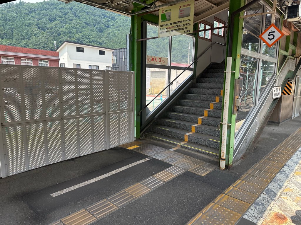 水上駅の乗り換えは先頭寄りのこの階段しかありません。