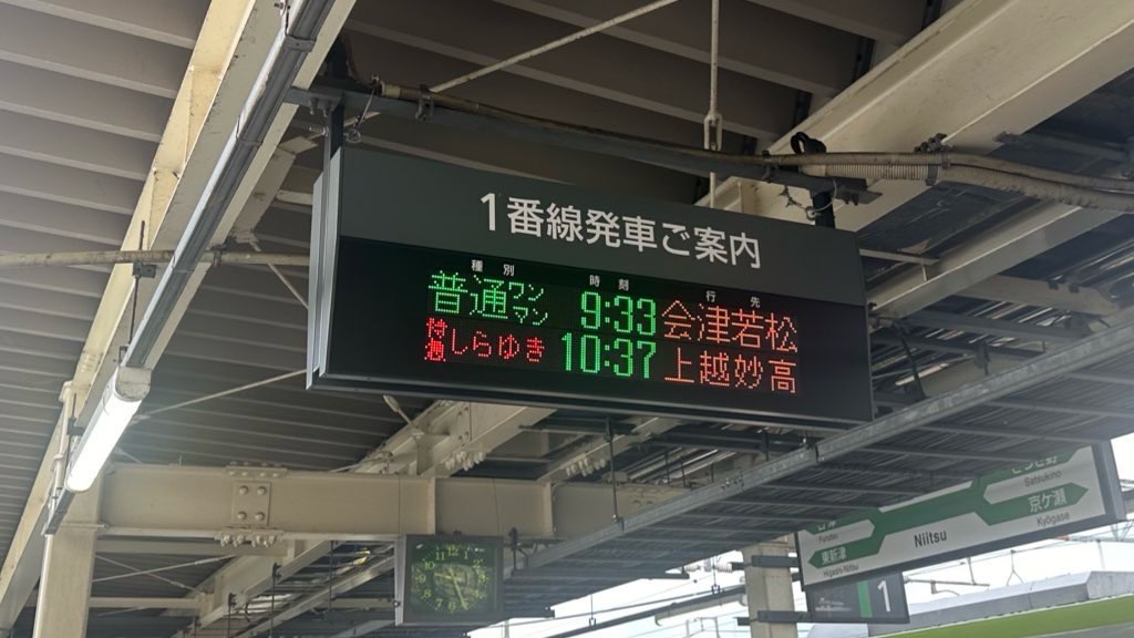 - 2日目 新潟駅を出発 → 信越線/磐越西線 → ラーメン二郎 会津若松店 → 会津若松を軽く観光 → 磐越西線/東北線/奥羽線 → かみのやま温泉駅到着 → 宿泊