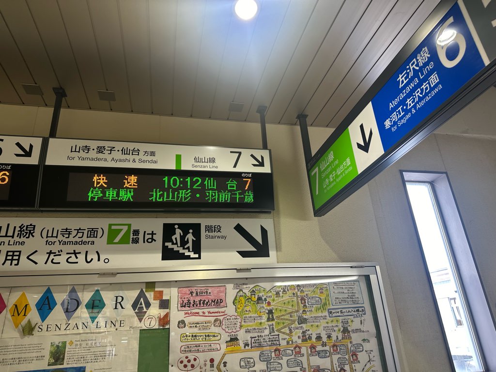 入浴後は奥羽線で山形駅まで向かい、仙山線に乗り換えて仙台に向かいます。仙台には昼の12時前に到着しました。仙台からは地下鉄に乗り換えて二郎に向かいます。